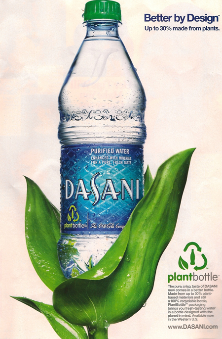 I was sitting in a Starbucks coffee shop when I came across a Dasani water bottle the other day and it looked a little different compared to what i am used to seeing. There was a large green recycle leaf shape on the side of the label which was the first thing my eye was drown to (the signature label has been solely blue for forever). Then there some print under the new green symbol. I couldn’t see exactly what it said so I was going to wait until the guy threw out the bottle, but then I thought what is the fun in that. So shamelessly went up to the guy and asked if I could read his water bottle...what ever I’m over it. He kind of looked at me funny, I mean who wouldn’t be confused if a stranger asked you that...but he let me and now I can blog about it. thank you Starbucks man. Below the green water leaf thing said and I quote “30% less plastic 100% recyclable”.